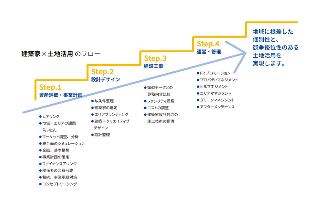 私たちは土地に根差した建築事業計画を総合的に提案いたします。